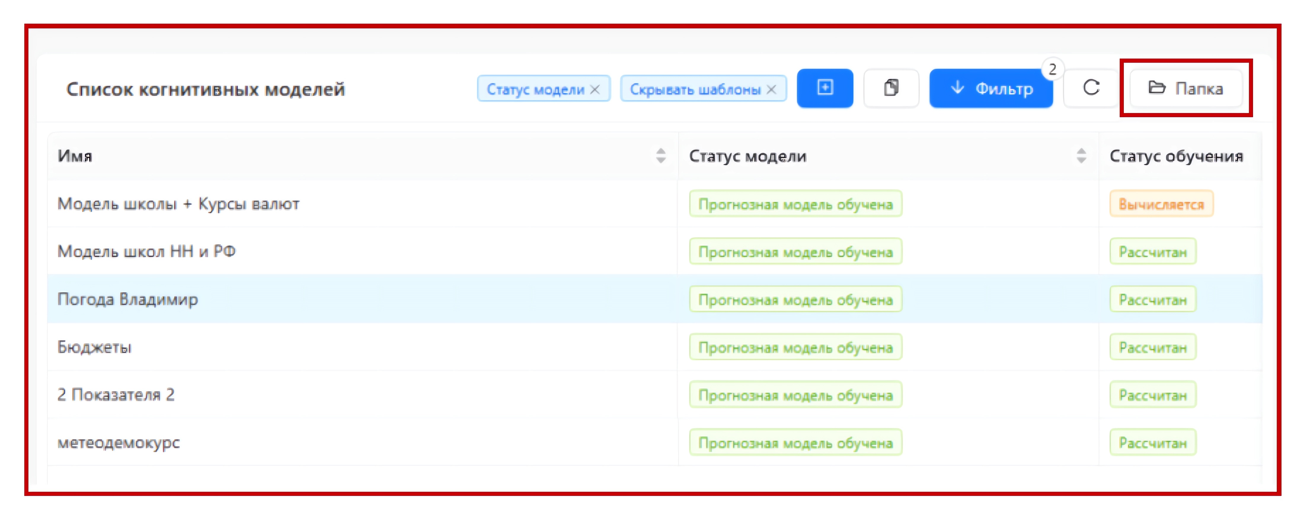 - Поле «Папка моделей» заполняется значение текущего отображения списка моделей, при необходимости можно изменить.