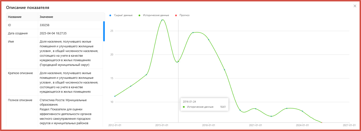 - получить «описание показателя»: